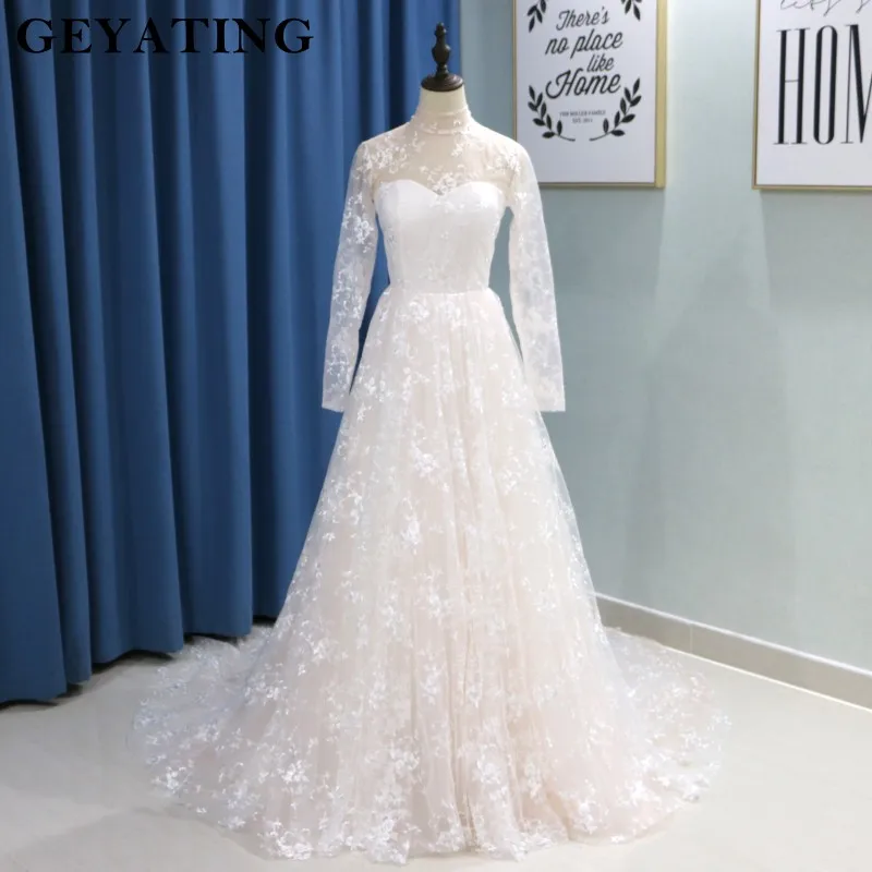 Gorgeous lace long sleeve high neck chiffon wedding dress with side slit, ow313. Long sleeve sheer tulle wedding dresses lace open back overskirt bridal gowns 2018. Lakshmigown a line wedding dress hochzeit chic boho bridal receipt wedding gowns high neck lace beach wedding dresses 2020. See more ideas about wedding dresses, dresses, wedding gowns. The right neckline is a defining element of your wedding gown;